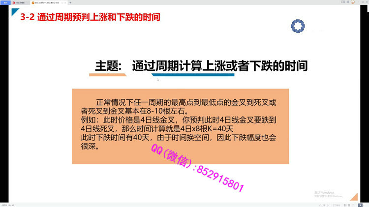 特色内容1、以“技术分析”作理论2、以“波段”作主要交易风格3、创新使用“金叉死叉’4、正确应用“看大做小”5、重新定义上涨和下跌的“结构课程目录:模块一:时间周期的特征1、金死又交替的正常K线根数2、周期之间的转换模块二:对于震荡行情的研究1、震荡行情是如何产生的2、如何计算震荡行情的时间3、日内交易时间长短对震荡时间的影响模块三:如何预判行情的大小1、时间周期和行情大小的关系2、通过周期预判上涨和下跌的时间模块四:均线分布和斜率对趋势的判断1、均线斜率是什么2、用假设性开仓来判断是否逆势模块五:对应周期表1、对应周期表(核心)2、对应周期表和震荡周期的关系(核心)3、如何拿单(波段和长线)4、波段和趋势行情的最佳转折点5、如何开仓、止损模块六:复盘的重要性以及如何复盘1、复盘的重要性是寻找开仓机会2、如何复盘视频截图: