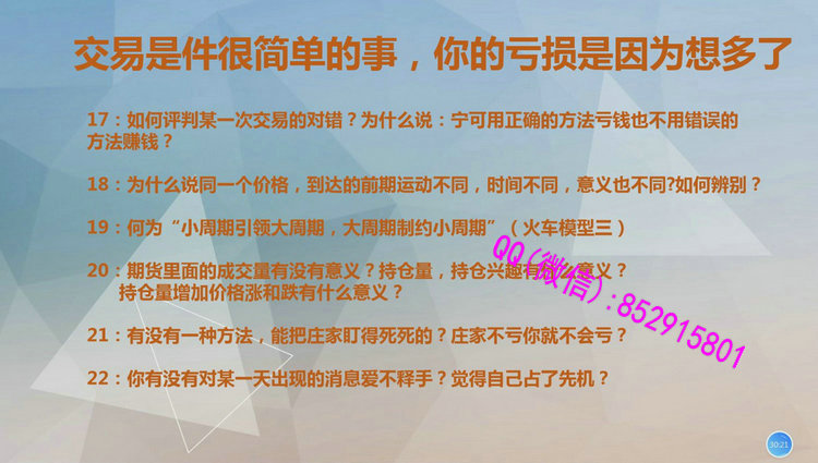 课程目录:001.进入期货市场前必须知道的事002.体验课003.第一节课004.第二节课005.第三节课006.第四节课007.第五节课008.第六节课009.第七节课010.第八课011.模型3解释012.动态跟踪交易系统具体细节013.进出场规则014.进出场规则补充015.修改后的系统