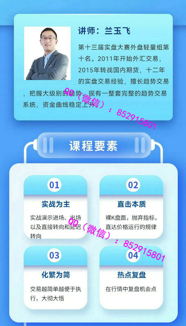 兰玉飞,第十三届实盘大赛外盘轻量组第十名。2011年开始外汇交易,2015年转战国内期货,十二年的实盘交易经验,擅长趋势交易。把握大级别的趋势。现有一整套完整的趋势交易系统,资金曲线稳定上升。