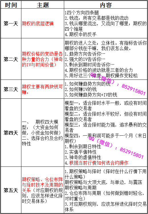 第四天:一、期权四大模型: (大资金如何做,小资金如何做)二、选择合约及合约特性