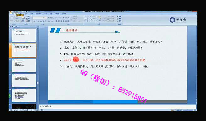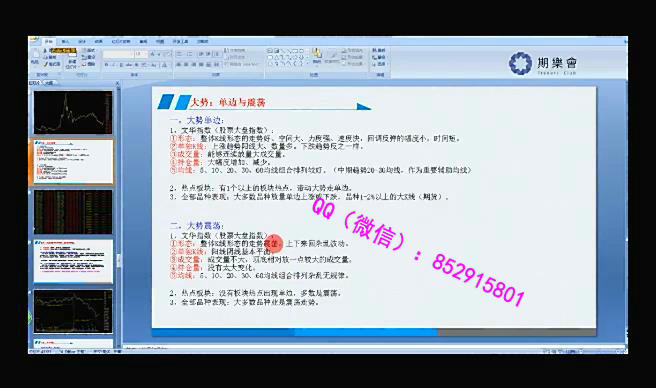 系统特点:1,百家之长:由多套理论与多年实战经验等精髓,经过10余年的磨练、交易、总结。2,内容概括:大势面、基本面、技术面、资金面、热点盘面等多个综合理论方法。3,交易风格:趋势、波段和日内。日内交易系统可分为日内趋势、日内震荡、日内专精单品种策略4,适合市场:适合期货、股票、外汇等多个市场。5,实战检验:在市场长期的检验下,盈利过上百万,上千万的成绩!是经过实战锻造与认可的稳定盈利的交易系统和方法策略!6,学习复制:经多名交易者学习,交易能力与业绩,均获得大幅提高,实践证明《五面逍遥策》是可学习复制的方法策略!课程目录:第一节:日内震荡交易的特点与必要条件第二节:日内震荡交易的进场时机第三节:日内震荡交易的止损与止盈策略第四节:日内震荡交易中的仓位管理第五节:案例解析与交易操作步骤第六节:震荡行情,如何高成功率操作第七节:实战案例与分时图第八节:大势与品种单边-震荡视频截图:
