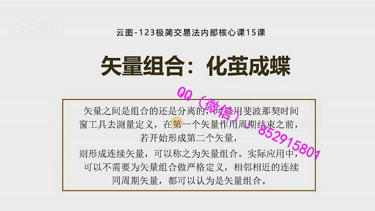课程内容:1.内部学院系统的核心加密视频课程:123交易法指标篇(云图系统)+能量篇(矢量突破)+价格行为2.内部研报:全球市场机会扫描,覆盖期货、美股港股A股、外汇、指数。课程目录:1.【会员课01】云图的设计思路和五大训练要素,用评分机制获取概率优势2.【会员课02】123法则结构线绘制核心十要素,背离的本质和意义3.【会员课03】顺势最佳工具:矢量突破的意义和用法,刷新你对市场能量和速度的认知4.【会员课04】用矢量突破复盘,验证黄金15分钟级别今年全部行情,实战出真知5.【会员课05】加深矢量突破实战意义的理解,强化评分机制,理解交易方法边界的重要性6.【会员课06】组合矢量突破的意义探索,强化入场和ATR止损规则,继续复盘黄金行情7.【会员课07】简化的矢量突破傻瓜式模型,固化进出场逻辑和分析边界8.【会员课08】矢量突破应用的常见5大误区,初步认识矢量组合和价格的共振现象9.【会员课09】矢量组合的定义和基本分类,四类双矢量组合实战分析10.【会员课10】裸K价格行为背后的博弈学原理和实战应用11.【会员课11】形态、能量、趋势级别的意义再梳理,归类所有分析工具确保交易完整性12.【会员课12】傻瓜式布林带震荡周期套利系统:以周为单位稳定收割市场13.【会员课13】矢量突破组合复盘2020走势,稳健盈利的三个理论基础要打牢14.【会员课14】复盘近期黄金比特币矢量走势,如何在短线上寻找矢量交易的高胜率机会15.【会员课15】大小周期支撑压力和方向矛盾,三周期比对操作法,一次性解决矛盾问题16.【会员课16】黄金75%盈利概率,29个矢量突破机会全解析 理解共振的意义17.【会员课17】双隧道金死叉系统结合123法则,黄金5分钟级别高胜率顺势原则应用18.【会员课18】3点如何定义震荡区间?《缠论》中枢的123改进版特点总结19.【高级01】双隧道走势中枢的绘制标准,结合黄金10个中枢定义边界和外延点20.【高级02】走势中枢的买卖点实战运用,掌握趋势段,周期,外延点的综合演绎21.【高级03】123顺势交易法定义和执行逻辑,三步确立趋势级别,高胜率博取中段利润22.【高级04】中枢套利系统终极复盘23.突破滤网参数设置和两类核心入场信号视频截图: