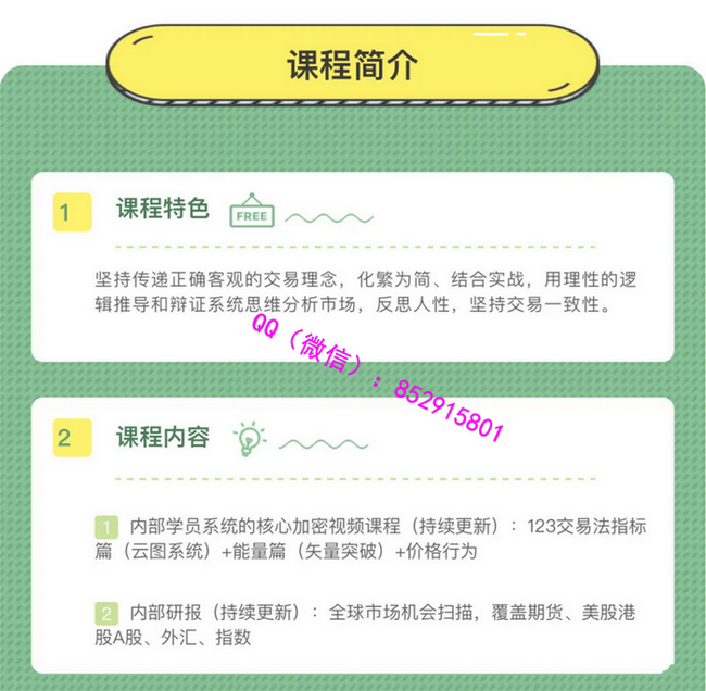 课程特色:坚持传递正确客观的交易理念,化繁为简、结合实战,用理性的逻辑推导和辩证系统思维分析市场,反思人性,坚持交易一致性。