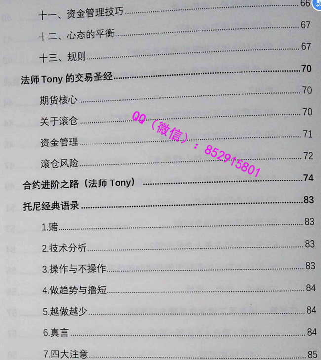 李法师Tony“期货圣经”,其内容原作者杨斌,由于部分内容与法师的交易理念同承一脉,十分值得一读,故能受到法师的推崇。杨斌,1993年入期货业,先后在期货公司做业务代表、业务主任。由于屡创佳绩、口碑渐盛。自1994年初接受全权委托,代理客户资金以来,总胜率在80%以上,即为80%以上的客户达到了盈利目标后立场,总盈利大于经手客户资金的两倍。作为一个职业操盘手,客户盈利提成是其唯一收入来源和成功回报。