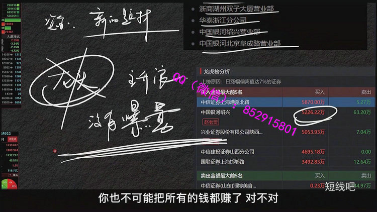 第一集:分时盘口解读如何看早盘这样看盘高效抓涨停第二集:盘中看盘技巧,一篇全讲透!!第三集:尾盘的秘密,到底是拉升还是打压?第四集:详细揭秘主力庄家的操盘全流程,从此不再被套路赶紧收藏第五集:三个步骤锁定龙头股,翻倍原来如此简单!第六集:【深度解析】股市最暴力的美学——地天板第七集:股市亏钱的真正原因,是你误解了追涨杀跌!追涨不被套完全教学!第八集:财务报表看什么?投资水平质的提升,核心就是这个数据!(一)第九集:财务报表看什么?投资水平质的提升,核心就是这个数据!(二)第十集:构建属于自己的MACD交易体系第十一集:龙虎榜你真的会看吗?机构VS游资,席位的真正含义第十二集:顶级游资思维,赵老哥、方新侠、章盟主操盘手法,席位详解第十三集:什么是优秀的筹码结构!!洞悉庄家控盘手段!!第十四集:大道至简,六条均线把握核心趋势,主力游资的操盘线!第十五集:龙头弱转强核心奥秘,分歧转一致,顶级游资短线操盘核心第十六集:系统的分时图看盘技法,一看就会,小白秒变职业操盘手第十七集:最核心的大盘分时研判技巧,进阶高手的必经之路!第十八集:一根K线看穿主力操盘意图,散户成为游资的必修课第十九集:如何单月翻倍?独家量价绝学,一眼看穿主力洗盘!第二十集:还在嫌技术没用吗技术指标的综合运用让成功率翻倍第二十一集:【股市盈利的精髓】第一生产力是预期差第二十二集:【股市盈利的精髓】短线的核心终极武器“弱转强”,秒板如此简单第二十三集:游资如何选标的?选股的逻辑,轻松抓妖股!第二十四集:用游资思维挖掘补涨标的第二十五集:如何正确做T?第二十六集:趋势的重要性!!第二十七集:这就是精准抓涨停!四个绝密信号!学会一抓一个准!