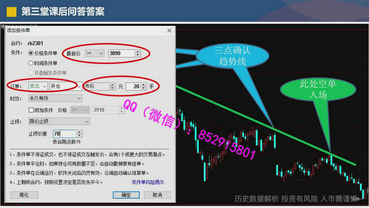 课程目录:第一部分:趋势的定义和趋势线的画法(1)亏损的两大原因(2)价格运行的三个基本原则(3)趋势分类:三种方向、三种趋势形态(4)真空管道里的乒乓球(5)趋势线:定义、画法、虚实结合(6)画图工具的使用(7)三个小疑问(8)课后作业第二部分:时间周期(1)第一课作业解析(2)哪里开始第一个峰(3)取点四原则(4)趋势线斜率(5)支撑和阻力(6)课后作业第三部分:择时(1)第二课作业解析(2)价格窄带(3)择时交易:进出场规则、如何提高胜率(4)重合区间交易(5)顺大势逆小势(6)条件单自动执行:优点、调整、四个价格(7)如何持仓(8)为什么选择20%(9)规避系统外的杂音(10)课后作业第四部分:轨道线支撑和阻力的转化(1)第三课作业解析(2)支撑和阻力价格窄带(3)支撑和阻力互换(4)什么叫突破(5)突破后如何操作(6)静态处理(7)只选择一个方向交易(8)课后作业第五部分:仓位管理(1)第四课作业解析(2)投资风格(3)资金管理风格(4)资金管理原则(5)开仓手数:半仓思维(6)胜率和盈亏比(7)如何加减仓(8)是否扛单(9)课后作业第六部分:止损(1)激进型止损方法(2)稳健型止损方法:定额止损、时间止损、形态止损、20%移动止损视频截图: