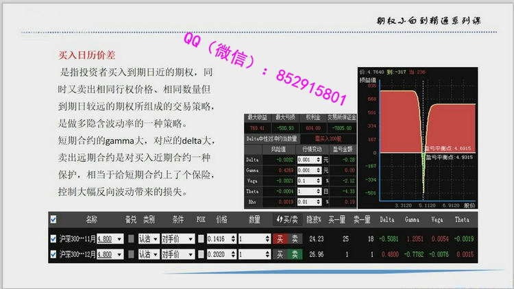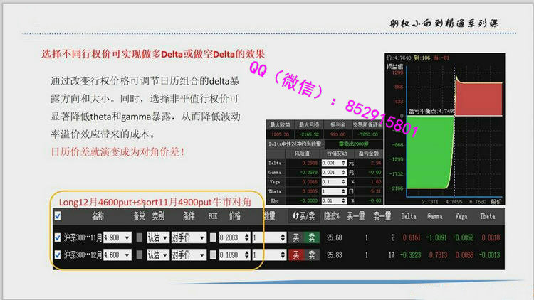 专长:能够根据当下的市场观点和风险评估制定出相应的交易策略并且实施;对期权的常用策略和应用场景有了全面的理解。投资者最终能否实现稳定盈利,取决于个人交易体系的建立和执行。对于没有构建成熟交易系统的投资者来说,最好先从实践和解决问题入手构建局部的知识模块,慢慢在把认知模块组织成系统。交易属于技能和开车一样,不是由知识堆积而成的,而是在不断的反复实践中进步,在不断操练过程中逐步形成自己的系统,再结合自己的性格和风险认知及偏好,最终完善出只适合自己的一套体系。交易体系的建立完全也是以这样一个流程进行,他人的体系只能借鉴、学习,无法照搬,所以交易的学习必须从实践开始。为帮助学员打造个人期权交易系统,解决期权初学者理论学习和实盘交易脱节的情况,吴保全老师此次课程,内容涵盖期权基础、期权策略、交易体系、交易定式四大篇幅。课程设计初衷:解决期权初学者理论学习和实盘交易脱节的情况。为期权爱好者学了大量期权理论知识,但仍不会交易的困惑而设计;解决期权策略和应用场景不能一一对应使用时机;面对希腊字母不知如何解读------十分钟让你彻底搞懂课程提纲:1.基础篇一、权利和义务不对等性及合约选择的逻辑二、影响期权价格的三要素三、希腊字母讲解-----十分钟搞懂希腊字母2.策略篇四、期权基本策略逻辑及演变垂直价差、日历价差、买跨策略、卖跨策略、对角价差、比例价差。3.体系篇五、期权交易体系的建立六、标的交易体系七、波动率在交易体系中的地位及应用八、期权交易体系构建流程4.交易定式九、“事件驱动”操作系统十、卖方 “一鱼三吃”操盘系统十一、买方“一鱼三吃”操盘系统十二、双卖策略的时机与止盈视频截图: