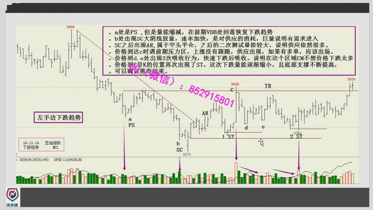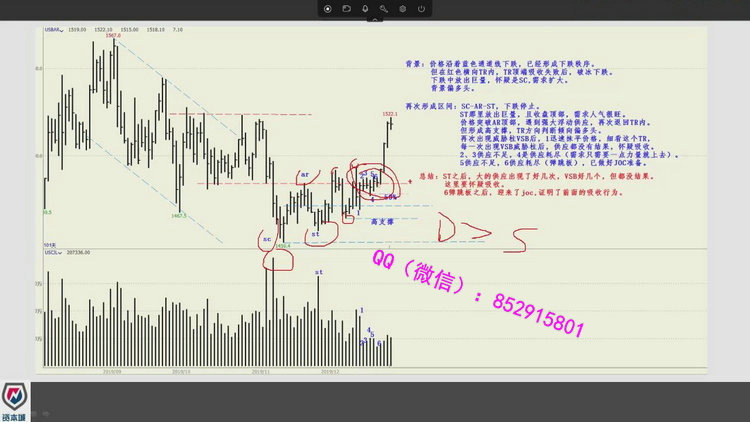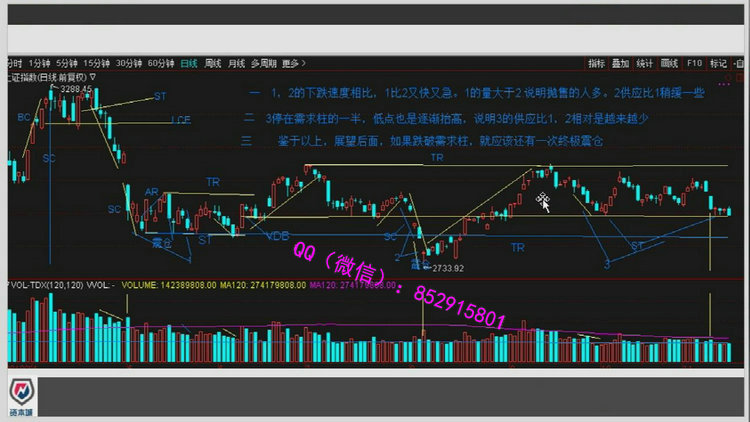 威科夫方法的每个原理.概念都相对容易理解,但是在真实市场中,这些原理、概念并不是 单个独立出现的,交易者总是要同时考虑多个变量,并合理地分配这些变量的权重,梳理出其背后的逻辑,才能正确地解读市场,这样的现实也使得理论与实战之间存在着巨大的鸿沟。课程目录:1.第一节:基于市场行为看市理念2.第二节:市场行为三大原则3.第三节:如何正确画线4.第四节:行情结构解析5.第五节:市场行为之趋势6.第六节:调整和反弹7.第七节:吸筹总括8.第八节:如何判断熊市停止9.第九节:吸筹过程(上)10.第九节:吸筹过程(下)11.第十节:吸筹结束的识别12.第十一节:派发总括13.第十二节:正确判断牛市停止14.第十三节:派发过程15.第十四节:派发结束识别16.第十五节:支撑和阻力的理解17.第十六节:正确理解VDB18.第十七节:VSB的理解19.第十八节:spring20.第十九节:UT21.第二十节:吸收识别22.第二十一节:认识COB23.第二十二节:跟随24.第二十三节:SOT的意义25.第二十四节:TR26.特训营训前辅导课第1讲:怎样分析市场的本质27.第一节:市场行为行情训练28.第二节:市场行为行情训练29.第三节:市场行为行情训练30.第四节:市场行为行情训练31.第五节:市场行为行情训练32.作业讲解:跟随视频截图: