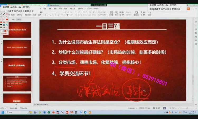 简介:《交大赢家股票期货特训营》主讲老师,和讯网特聘嘉宾,交大教育集团国际金融研究院特聘讲师,CCTV证券资讯频道特邀嘉宾,和讯财经特邀嘉宾,1999年进入股市,历经三轮牛熊轮回,2009年、2010年在期货市场均获利数倍,组建团队一直保持较高收益的稳定盈利。精于多周期灵活运用和形态过滤,自创顺势三大战法和四重过滤,尤其擅长以期货的眼光洞察股市,在不同市场环境下均能持续盈利。2014年开始从专业操盘手成长为国内顶尖投资教练,通过线下开办数十期股票期货操盘手特训营,训练出数百位专职专业操盘手,影响数万人走上赢家之路。课程目录:第1节-板块选股法第2节-资金选股法第3节-特定风格选股法第4节-近期强势股选股法第5节-如何分辨市场赚钱主线和风格第6节-止损一第7节-止损二第8节-止损三第9节-如何判断短线情绪周期第10节-赢在起涨点平台突破第11节-涨不停斜率上涨模式第12节-次新股三大模式第13节-熊市抄底之超跌反弹第14节-有鬼反包模式第15节-如何制定交易计划第16节-盘前准备工作第17节-风险控制和资金管理第18节-T+0手法精选回放2022.11.04-通达信软件运用+好股票分类精选回放2022.12.18底部票成交量四种变化精选回放2023.1.8航锦科技走线训练精选回放2023.3.9底部20cm剖析精选回放2023.3.19集合竞价选股法精选回放2023.3.26高低票防守策略精选回放2023.4.9趋势票低吸+注册制新股做法精选回放2023.4.13-20cm龙回头封单比精选回放2023.5.7中特估分析精选回放2023.5.21人生五章精选回放2023.5.23从且战且退到穷图匕见精选回放2023.5.28交易六要素(上)精选回放2023.6.4交易六要素(下)精选回放2023.6.11成长金字塔精选回放2023.6.18基本趋势技术(点、线、面)精选回放2023.6.20牛股的六大特征精选回放2023.6.25减速器的龙头卡位精选回放2023.6.29主线风格+节奏处置精选回放2023.7.2定性K线和定量K线精选回放2023.7.9确定性和不确定性精选回放2023.7.18弱市环境的生存技巧