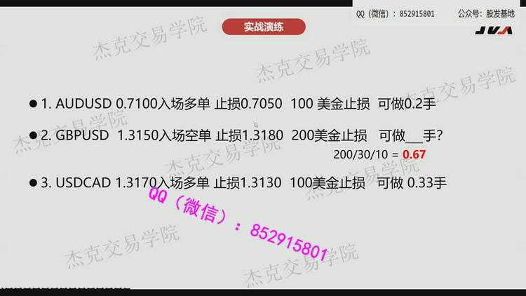 杰克交易学院 交叉盘新兴市场直盘货币仓位计算特训班 美股恒指黄金白银原油培训视频课程