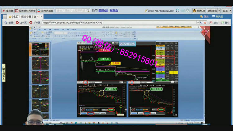 顺流小毕,全职操盘手,CMoney 特约讲师。非凡新闻、聚财网特约嘉宾 元富、群益讲座讲师。 元富、群益讲座讲师 曾任「台湾微软」约聘讲师 「数位指标资讯」前总经理 「普洛斯创意资讯」董事长 课程大纲: 1.交易观念-基础建构/心态准备 2.走势模式-交易周期/盈亏比计算 3.工具应用-移动平均线/判断多空 4.高获利技巧-判断进场时机/选股逻辑 5.顺势选股法-趋势画线法/追踪趋势线 视频截图: