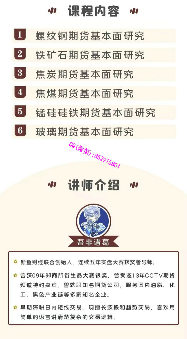 吾非诸葛,白新鱼财经联合创始人,连续五年实盘大赛获奖者导师。曾获09年郑商所衍生品大赛银奖,曾受邀13年CCTV期货频道特约嘉宾,曾就职知名期货公司,服务国内油脂、化工、黑色产业链等多家知名企业。早期深耕日内短线交易,现擅长波段和趋势交易,喜欢用简单的语言讲清楚复杂的交易逻辑。