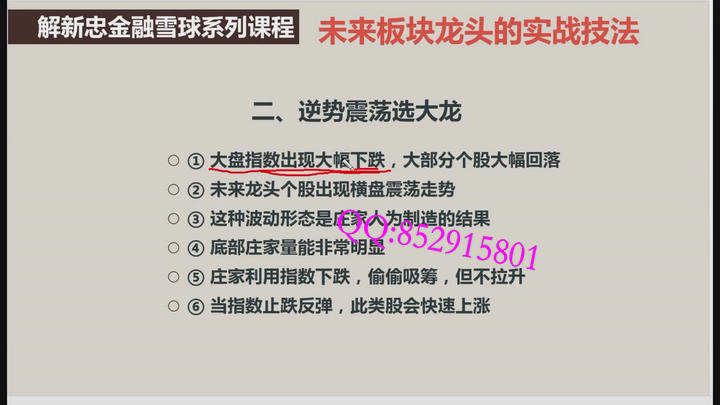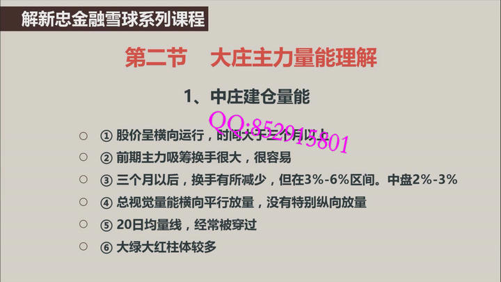 解新忠金融雪球 中级培训大庄猎手班 庄家量能持仓洗盘出货判断龙头板块实战技法课程
