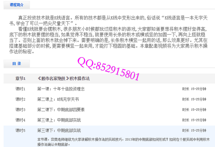 五域论堪奕樊《股市名家绝技》积木操作法 李菲全套视频课程