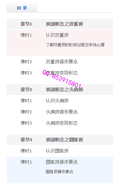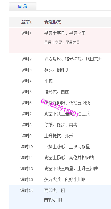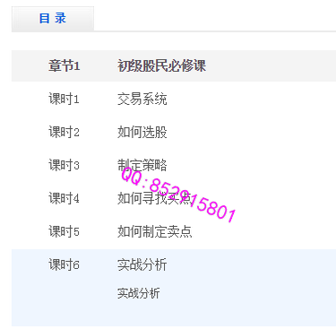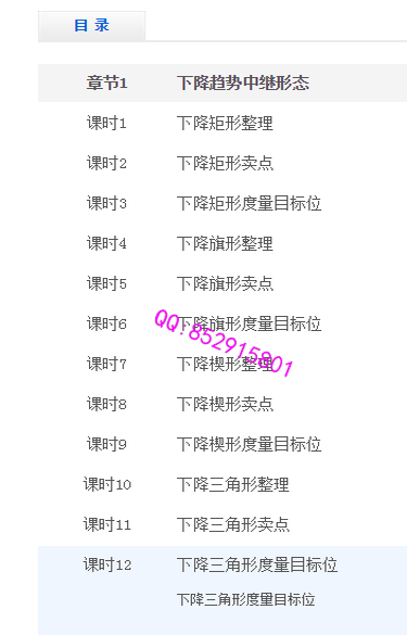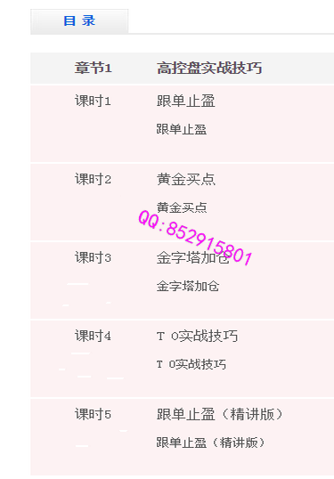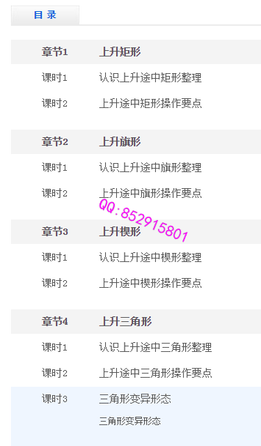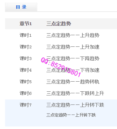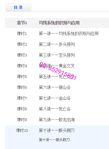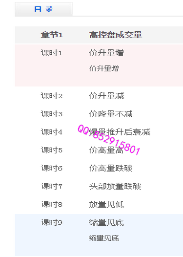 11、均线系统的识别与应用 10集 视频12、 高控盘实战技巧 5集 视频13、 二龙出水 1集 视频14、主力运作流程实战 5集视频15、三点定趋势 7集视频16、主力操盘八大骗术 6集视频17、复盘选股四步走 4集视频视频目录:视频截图: