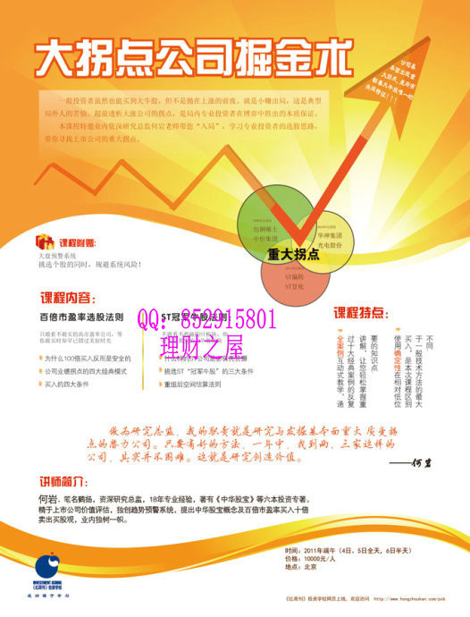 何岩:笔名鹤扬,资深研究总监,18年专业经验,著有《中华股宝》等六本投资专著。 精于上市公司价值评估,独创趋势预警系统,提出中华股宝概念及百倍市盈率买入十倍 卖出买股观,业内独树一帜。