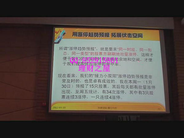 2005年创办我国第一个“量柱理论”研究室,每一次将“量柱”作为“股市温度计”进行系统研究,其后又将“量线”作为“股市脉搏仪”、“量波”作为“股市心电图”进行全面研究,从而完成了“量柱擒涨停”、“量线捉涨停”、“量波抓涨停”三大发明,2007年累计预报217个涨停、2008年累计预报331个涨停、2009年累计预报365个涨停,并多次提前准确预报逃顶抄底良机,被网友誉为“我们的股海明灯”。培训内容目录:
