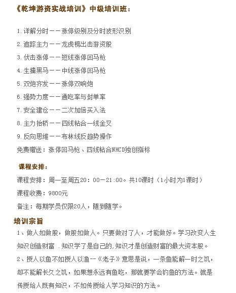一言老师 《乾坤游资实战培训》中级班培训课程