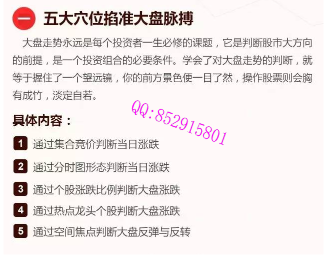 该课程凝结了姜老师近20年盘口语言的最核心研究成果,最新的课程中,更增加了姜老师美国“巴菲特股东会”之行的全新感悟,使盘口语言战法的完成了更大实战效果突破! 《十年磨一剑·盘口核心奥秘》系列教学课程共分为3节,在3节课程里,姜老师将通过系统讲解“五大穴位掐准大盘脉搏”“双峰贯耳”“苏秦背剑”三大重磅内容,让大家掌握盘口语言的高级核心技巧,学会快速判断大盘走势,把握个股上涨行情。 视频截图: