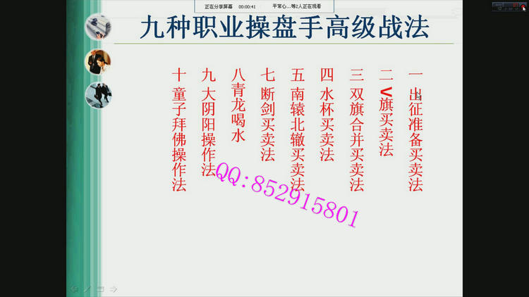 授人以鱼,不如授之以渔,授人以鱼只救一时之急,授人以渔则可解一生之需!让您终身受益! 直奔主题,只讲实战。10多年经验,全程奉献。引导客户及学员走出误区,摆脱亏损稳定获利。课程简介: