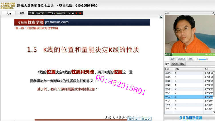 章节 名称/介绍 课时 章节1 K线的基础知识与技术内涵41课时 K线的起源课时1 K线的起源 K线的基础知识与技术内涵—答疑课课时2 答疑课(1) 构成K线的诸要素课时3 构成K线的诸要素 K线的基础知识与技术内涵—问答解读课时4 问答解读2 单一k线的种类和含义课时5 单一k线的种类和含义 单一k线的种类和含义-问答解读课时6 本节内容:单一k线的种类和含义-问答解读 特殊的变盘K线课时7 特殊的变盘K线 特殊的变盘K线-问答解读课时8 特殊的变盘K线-问答解读 常见组织K线及含义(1)课时9 本节内容:常见组织K线及含义(1) 常见组织K线及含义(1)-问答解读课时10 本节内容:常见组织K线及含义(1)-问答解读 常见组织K线及含义(2)课时11 本节内容:常见组织K线及含义(2) 常见组织K线及含义(2)-问答课时12 本节内容:常见组织K线及含义2-问答 常见组织K线及含义(3)课时13 本节内容:常见组织K线及含义(3) 常见组织K线及含义(3)-问答课时14 本节内容:常见组织K线及含义(3)-问答 常见组织K线及含义(4)课时15 本节内容:常见组织K线及含义(4) 常见组织K线及含义(4)-问答课时16 本节内容:常见组织K线及含义(4)-问答 常见组织K线及含义(5)课时17 本节内容:常见组织K线及含义(5) 常见组织K线及含义(5)-问答课时18 本节内容:常见组织K线及含义5-问答 K线的位置课时19 本节内容:K线的位置 K线的位置-问答课时20 本节内容:K线的位置-问答 K线的位置(2)课时21 K线的位置(2) K线的位置(3)课时22 K线的位置(3) K线的位置-问答(3)课时23 K线的位置-问答(3) K线的位置(4)课时24 本节内容:K线的位置(4) K线的位置(4)-问答课时25 本节内容:K线的位置(4)-问答 K线的位置(5)课时26 本节内容:K线的位置(5) K线的位置(5)-问答课时27 本节内容:K线的位置(5)-问答 K线的位置(6)课时28 K线的位置(6) K线的位置(7)课时29 本节介绍:K线的位置(7) K线的位置(8)课时30 K线的位置(8) K线的位置(8)——问答课时31 K线的位置(8)——问答 K线的位置(9)课时32 本课简介:K线的位置(9) K线的位置(10)课时33 K线的位置(10) K线的位置(11)课时34 K线的位置(11) K线的位置(12)课时35 K线的位置(12) K线的位置(13)课时36 K线的位置(13) K线的位置(14)课时37 K线的位置(14) K线的位置(15)课时38 请输入课时简介 K线的位置(16)课时39 K线的位置(16) K线的位置(17)课时40 K线的位置(17) K线的位置(18)课时41 K线的位置(18) 视频截图: