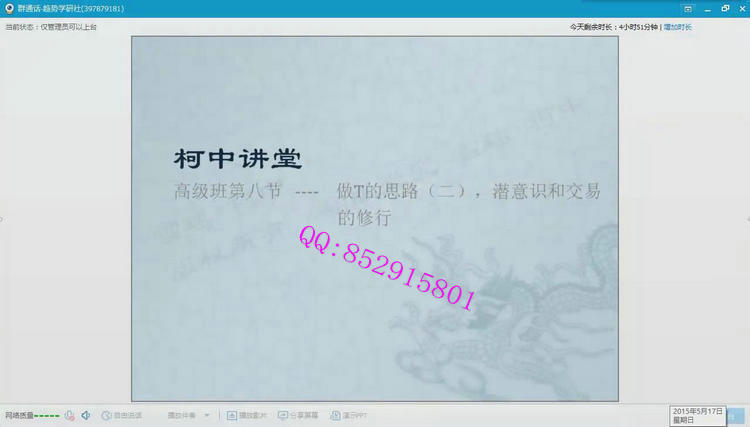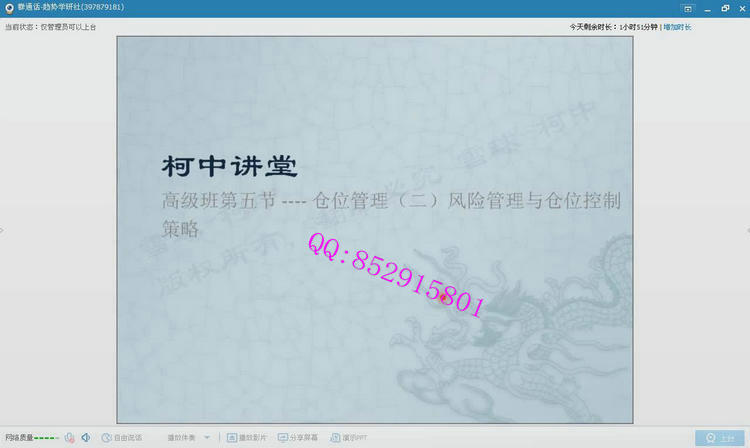 高级课程主要是针对有一定基础人的讲座,如果你真听明白了我的授课体系,还认真去执行的人,想在这个市场上亏钱实在太难.而高级课程更注重实战技巧和非常实用的理论.可能我会对一些个股的当前形态加上理论一并分析.
