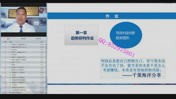 2000年开始从事期货交易,先后尝试趋势、波段、套利和程序化交易,10多年间数次暴仓,累计向市场缴纳学费达上千万元,这期间潜心研究和体悟交易,不断总结失败经验,最终建立执行程度高、心里承受能力最佳的短线交易策略《千策六星战法》,并应用于实战和复制,成绩斐然。现主要致力于“千策投资日内短线交易团队"孵化,打造国内顶级百人日内短线(高频与波段)交易团队。精彩回顾:★ 2012年股指单品种单账户从170万到700万;★2013年CCTV实盘大赛排名前五,并接受央视证券资讯频道专访;★ 2015年CCTV实盘大赛投顾组第五名;★ 2015年指导嘉恒骏丰私募基金净值1.852 元;★2016年学员参加期货实盘大赛三周收益39.6%★ 2016年9月1日起三个月实战指导账户净值12 倍;你将学到什么: