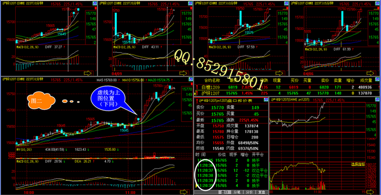 82.如何“一分钟一阶段”及学成“操盘绝技的途径①挑选品种有何技巧?那些品种适合日内短线? ②跳空时MACD指标会失真吗?③3、5、10、15趋于一致,30、60分在相反一阶段时,该如何操作?(大小周期组合间的关系及综合判研);④为什么会出现多个周期的连体红柱?⑤黄白线运行在柱体的上方、下方或中间有什么意义?⑥如何提前预判平台的成功突破?