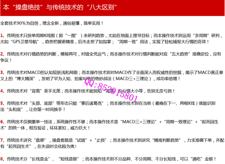 姜伟先生历经近20年的潜心研究,创建了“MACD多周期”操盘技术(也叫“周期一致理论”类似周期共振),就是综合多周期信息进行行情研判的新技术,准确率较传统技术提高到了80%以上,著有《买进就涨 卖出就跌 期货操盘绝技》和《多周期MACD围捕黑马股》,技术既适用股票、期货、现货、股指、恒指等;又适用任何周期、长短线。