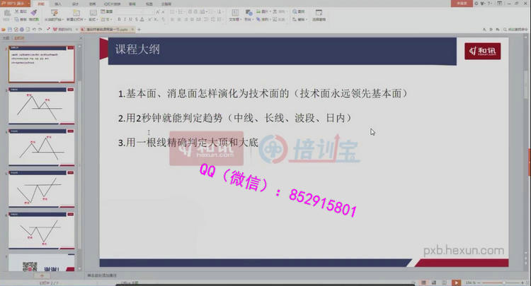 第一节:2秒判断趋势和最管用的一根线1.基本面、消息面怎样演化为技术面的(技术面永远领先基本面)2.用2秒钟就能判定趋势(中线、长线、波段、日内)3.用一根线精确判定大顶和大底第二节:周期转换进出场和止损设置1.各种周期的转换2.精确的进场点3.精确的出场位4.精确的止损位第三节:过滤震荡资金管理和中继形态识别1.怎样回避振荡行情2.大小资金不同的资金管理3.中继形态识别和开仓位