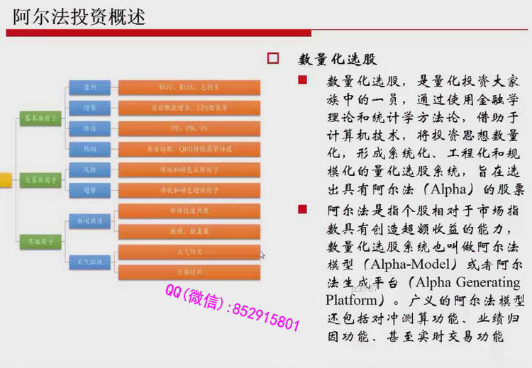 这门课的主要目的是让大家理解和掌握量化投资的应用领域及其业务知识,通过实际的案例教学,掌握端到端的量化交易流程,教会学员编写策略程序,通过建模,回测和风控,形成可盈利的策略并将整个流程自动化。其次,我们将讲授如何利用前沿人工智能的技术,如:机器学习方法,对海量金融数据进行建模,掌握机器学习在量化建模中的应用方法。课程也会提供量化策略研发平台服务,帮助学员建立自己的策略研究库。