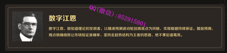数字江恩,股知道理论的发明者,以精准预测波动轮回高低点为风格,实现稳健持续保证。提前预测,观点明确细致让市场验证准确率,坚持走趋势结构为王者的思路,绝不事后诸葛亮。