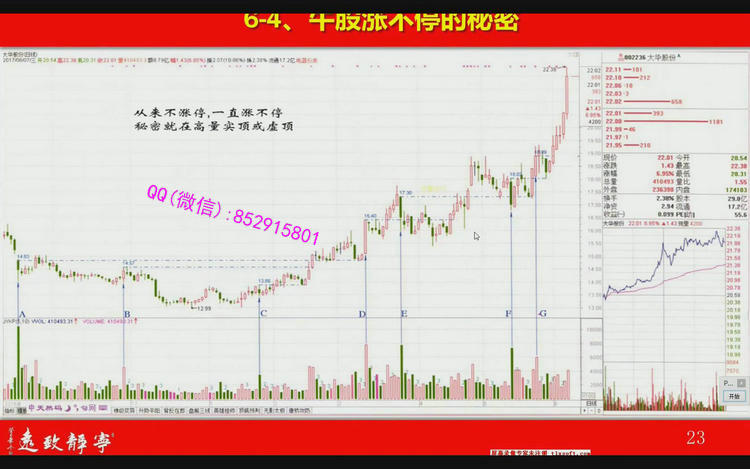 【老师简介】黑马王子,真名张得一,大学教授,创新型学者,发明家,演说家。 2005年创办我国第一个“量柱理论”研究室,第一次将“量柱”作为“股市温度计”进行系统研究,其后又将“量线”作为“股市脉搏仪”,“量波”作为”股 市心电图“进行全面研究,从而完成了“量柱擒涨停”、“量线捉涨停”、“量波抓涨停”三大发明。2007年累计预报217个涨停,2008年累计预报 331个涨停、2009年累计预报365个涨停,并多次提前准确预报逃顶抄底良机,被网友誉为:“我们的股海明灯”!【课程简介】量学课程包括初级班、中级班、高级班三个层次。初级班是自学老师的四本书即《量柱擒涨停》《量线捉涨停》《伏击涨停》《涨停密码》,有了一定基础,再上中级班、高级班才能事半功倍。中级班主讲量柱和量线,高级班主讲量线和量波。两个班的内容完全不同,两个班的内容合并才能构成完整的量学“量柱选股,量线选价,量波选时”操盘体系。【课程目录】第1讲 股市的内在规律第2讲 量学的七大法宝第3讲 股市赢家的王牌第4讲 量价时空势波能第5讲 量学看盘八法则第6讲 量学阴阳回马枪第7讲 量学的康桥战法第8讲 伏击涨停的高招第9讲 量学的短线法宝第10讲 量学的牛股量形