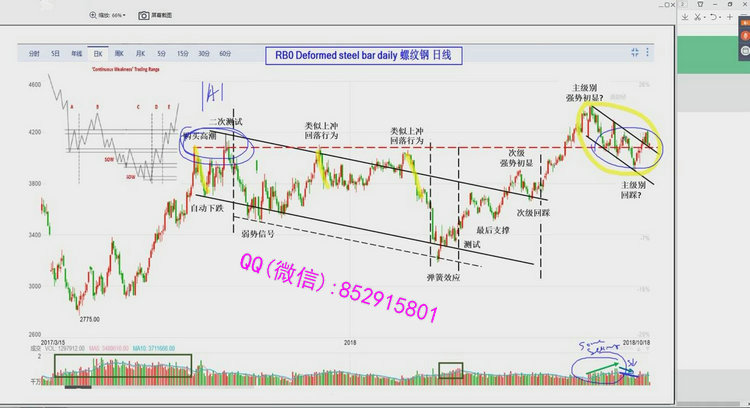 你也将学会如何分辨吸筹和再次派发,分辨派发和再次吸筹,确定接下来的长期运动方向,并同时制定相应的交易策略。1、如何辨认价格循环中的交易机会,如何确定交易性质2、吸筹和派发过程中的威科夫原理标注和阶段3、吸筹和派发过程中的分段细节与进出场点4、如何运用结构分析进行策略制定5、吸收供应和吞没需求的特征6. Spring. UT、JOC和BU、FI和BOI的细节特征2.趋势分析趋势分析也被绝大多数威科夫交易者低估,他们专注于横盘阶段,却在趋势中不断丢掉头寸甚至逆市交易。技术分析第二大前提条件 :价格以趋势方式演变。其实质含义有两层,一是要在趋势发生的早期 ,准确地将它辨认出来;二是坚定不移地顺应趋势,直到有反向的征兆为止。多数交易者在趋势早期或者趋势中犯错的原因在于,他们缺乏对市场的位置感,缺乏对时机的判断。在上涨趋势中,并不是所有时候都适合建立多头头寸,反之亦是如此。在趋势分析部分,您将学习进行趋势分析的方法, 掌握好如何在趋势开始时、 超势回落时,超势恢复时建立头寸,以及如何在格势结束时关闭头寸。1、趋势以及相关概念的定义2、趋势的测量I具的使用3、 如何形成对市场的位置感4、如何在趋势中建立头寸5、如何在趋势结束时关闭头寸3.供求分析技术分析第一大前提条件是 :市场行为包容消化一切。其实质含义就是市场行为变化必定反映供应关系。而市场行为包括三个:价格,成交量和持仓量,我们通常所说的市场行为主要是指价格行为和成交量行为。熟练使用威科夫方法中的供求法则,威科夫交易者将精于看穿市场行为,并理解其背后的供求逻辑关系。然而,根据我们学员在系统学习威科夫方法之前的状况来看,多数威科夫交易者只是将量价特征简单地与供求对应起来,并没有形成具有逻辑性的推理,就直接对接下来的价格走势给出武断的结论。以上的做法,实与简单地使用形态和指标进行交易无异,我们希望通过供求分析的课程帮您扭转这样的局面,在掌握到供求分析的正确方法和逻辑之后,它将与结构分析协同起来帮助交易者提升对于交易的把握性。4.强弱分析顺势而为不单单是一句口号 ,交易者必须将它贯穿于交易的始终。我们永远要在上涨的市场中买进远远强于市场的品种,在下跌的市场中卖出远远弱于市场的品种。强弱分析也同样是多数威科夫交易者的弱项,我们看到太多的交易者不断地去交易那些上涨中弱势的股票,这无疑会提高交易者赚钱的难度,也会大大地限制交易者可能赚到的利润。威科夫方法的五个步骤中,强弱分析能够快速地帮助交易者过滤掉那些不必去考虑的品种,从而帮助交易将有限的精力放在那些优秀的品种中,进行取得远远优于市场表现的交易业绩。1、相对强弱的定义及内涵2、 如何进行自上而下的高效选股3、如何正确地使用相对强弱4、如何将相对强弱与结构分析、供求分析结合起来5.综合运用从我们的交易经验来看, 威科夫方法最大的优势在于,交易者能够根据不同的市况做出最优的选择。而这个能力就要求交易者能够综合地运用所有威科夫方法中的知识,它需要交易者在学习时付出巨大的努力,并不断地进行练习和训练。我们将会在综合运用中展示在实盘中,如何去综合地、系统地、全面地应用威科夫方法中的各类概念和工具。1、如何将结构分析、供求分析和强弱分析统一起来2、如何综合所有的分析结果来制定最合理的交易策略3、如何制定交易计划并进行头寸管理视频课程截图: