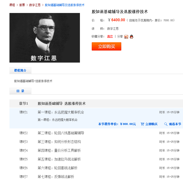 数字江恩,股知道理论的发明者,以精准预测波动轮回高低点为风格,实现稳健持续保证。提前预测,观点明确细致让市场验证准确率,坚持走趋势结构为王者的思路,绝不事后诸葛亮。 课程目录: 第一课程:永远把握大概率机会 第二课程:轮回八仙基础篇辅导 第三课程:如何分析形态结构 第四课程:量价分析工具解析 第五课程:加速拉升战法解析 第六课程:轮回套战法解析 第七课程:反弹战法解析 第八课程:三套战法总结 培训视频截图:
