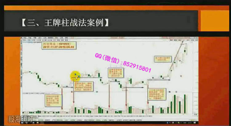 韩将军简介:职业股票投资人,操盘手,从事股票投资12年,期间专职研究股票运行规律达5年之久,对市场热点及节奏把控有独到见解,擅长“量学擒龙战法”。他第一次主持实盘点评时,行情很不好,但他临危不惧、镇定沉稳、勇猛出击,犹如一位驰骋沙场的干将,称他为“韩将军”。 课程目录: 1.量柱实战解析 2.量柱实战解析 3.量柱实战解析 4.跟庄利器王牌柱 5.四大起涨点 6.跟庄利器涨跌密码 7.跟庄出货九阴真经 8.如何踏准大盘节奏 9.如何跟紧板块节奏 10.课程总结 培训视频截图:
