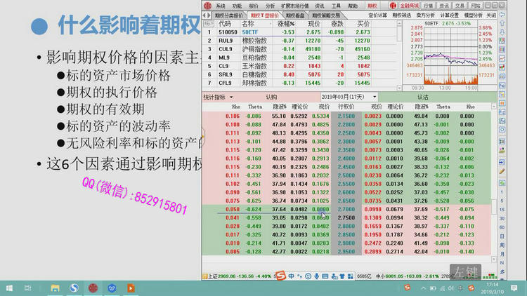 课程大纲:一、基础篇一、我为什么中意期权二、初识期权三、影响期权价格的相关因素四、期权相对其他投资品的特点五、期权的买方与卖方六、小白怎样期权入门二、期权实务七、期权开户与交易流程八、期权软件看盘与交易界面九、期权交易基本规则十、期权保证金与权利金十一、期权的套期保值三、期权策略十二、标的为王十三、例示四种基本策略十四、如何选择合约十五、白话波动率十六、例示一些复杂策略应用十七、技术分析在期权中的应用十八、波段操作之法十九、日内操作之法二十、多品种机会二一、开仓与平仓要点二二、白话希腊字母四、风险控制二三、追高OR抄底?二四、期权交易的风险二五、期权交易心理二六、小白误区二七、期权交易常见坑五、做市商二八、你的对手是谁?培训视频截图:
