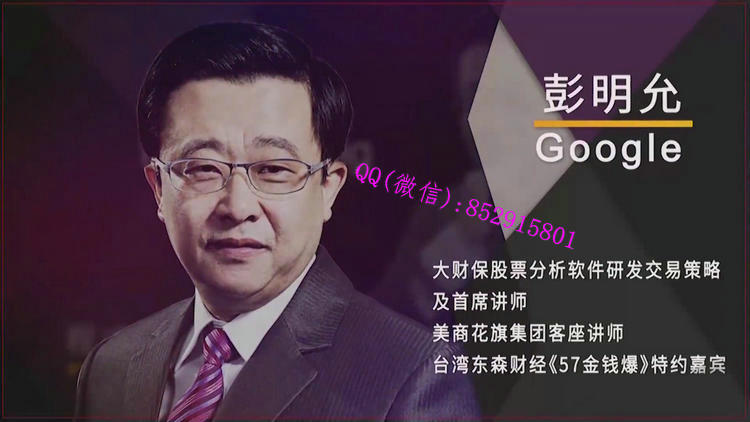 彭明允,CSIA证券分析师、程式量化大师。日商国际期货商品公司操盘手,大财保股票分析软件研发交易策略及首席讲师,美商花旗集团客座讲师,台湾东森财经 《57金钱爆》特约嘉宾。历经28载牛熊,升级安全投资策略及理念,综合技术分析、筹码分析和基本面分析,配合大数据与投资心理策略,综合判断,让收益无处可逃!将最佳赚钱战法进行到底!