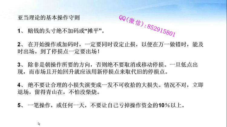 第一讲:趋势线和趋势通道趋势表示事物未来发展的动向,在金融交易市场表示证券、期货、外汇运动的方向,抓住未来趋势的方向,是交易成功的关键。第二讲:均线和均线组的应用移动平均线是最为常用技术分析指标之一,采用统计学中"移动平均"的原理,将一段时期内的商品价格平均值连成曲线,用来显示商品的历史波动情况,进而反映价格指数未来发展趋势的技术分析方法。第三讲:MACD指标的应用MACD是投机市场中应用较为广泛的一种技术指标,股市、汇市、期市都是该指标大显身手的领域。第四讲:在逆势中使用MACD指标在金融界有一句话被无数的人传诵,“商品的价格永远不会高到不可以再买入,也永远不会低到不可以再卖出。”逆市中操作反弹最重要的是看形态,操作中最重要的则是时机。第五讲:反转形态之头肩形态头肩形态可能是最为著名和可靠的形反转形态之一。我们将详细介绍这种形态的特点和交易策略。第六讲:反转形态之双顶双底形态双重顶(或双重底)反转形态出现得也很频繁,且易于辨认。通常被称为“M顶”和“W底”。第七讲:反转形态之圆弧形态今天介绍的反转形态比前面几种都少见得多,它有好几个名字一圆顶或圆底、圆弧、盆形或者碗形。本形态代表着趋势的很平缓的、逐渐的变化。第八讲:反转形态之V形反转V形反转形态是所有反转形态中最神出鬼没的,在其出现时较难判别,但它并不罕见。此前讨论过的一些反转形态均代表着趋势的逐渐变化。现存趋势先逐渐放缓,进而供求双方的力量对比达到相对平衡,决定原有趋势到底是反转还是恢复。第九讲:中继形态之矩形矩形是最为常见也是最为普通的中继形态之一。有时我们把矩形称为交易区间或密集区。它通常只是既存趋势中的调整阶段,最终市场将顺着之前的趋势方向完结它。第十讲:中继形态之旗形旗形与平行四边形或矩形相像,是由两条向主要趋势相反方向倾斜的、相互平行的趋势线围成的。在下降趋势中旗形具有向上的倾角。相对而言旗形是短期的,经常不超过一到两周。第十一讲:中继形态之三角形三角形形态在实际走势中常出现于各个时间段,且大多数时候属于中继形态,所以在实战中的操作价值较高;虽然有时也作为反转形态出现,但特征相对比较明显,便于鉴别。第十二讲:中继形态之楔形楔形形态具有鲜明的倾角,方向很明确,要么向上,要么向下。一般地说。楔形如同旗形一样,其倾斜方向与流行趋势相反。于是。下降楔形属于看涨形态,而上升楔形为看跌形态。第十三讲:指标KDJ的用法随机指标(KDJ),最早起源于期货市场,由乔治.莱恩首创,它在通过当日或最近几日最高价,最低价及收盘价等价格波动的波幅,反映价格趋势的强弱。第十四讲:相对强弱指标RSI相对强弱指标最早被应用于期货买卖,后来人们发现在众多的图表技术分析中,相对强弱指标的理论和实践极其适合于股票市场的短线投资,于是被用于股票升跌的测量和分析中。第十五讲:布林线的应用布林指标(BOLL)是由约翰·布林格(John bollinger)发明的技术分析工具,有些资料上也称之为保力加通道。一般来说,BOLL是由上、中、下三条轨道线组成。第十六讲:黄金分割线斐波那契点位,又称黄金分割位,为交易者提供了比较准确的支撑阻力位,是黄金外汇交易中的利器。第十七讲:支撑位与阻力位支撑位与阻力位是可以作用互换的,当价格在某一重要位置之下时,该位置有阻力作用,当价格向上突破该位置后则可能再次回调到该位置,则此位置从此前的阻力作用转换为支撑作用,所以我们统称为支撑阻力位。第十八讲:K线形态(线态)K线又被称为蜡烛,起源于十八世纪日本的米市,当时日本的米商用来表示米价的变动,后因其标画方法具有独到之处,因而在股市、期市、汇市和金市中被广泛引用。第十九讲:交易心理学我们很多的投资者在进行交易的过程中往往要经理三个过程,从最初的博式交易(也就是我们常说的完全不懂的乱交易),到第二个阶段使用各种的分析方法,直到最后的一个步骤,也是成功的关键,风险控制、资金仓位管理、理性的客观分析。第二十讲:波浪理论波浪理论是技术分析大师艾略特(R.N.Elliott)于1939年所发表的分析方法。艾略特认为价格的波动与大自然的潮汐一样,一浪紧随一浪,周而复始,具有一定的规律。第二十一讲:导致亏损的十大杀手无论在哪一个金融市场中,对于广大的个人投资者而言,80%的人都是亏损的,剩下的20%其中有一半即10%的人可以做到盈亏平衡。第二十二讲:速率分形图速度是有形态的,速度的发展是有周期的,无论是上涨还是下跌,都可能会经历这些过程,即从新生到成长,在到鼎盛,最后衰退。第二十三讲:被人为放大作用的趋势线我们通常用画趋势线的方式来理解趋势是如何发展的,因而我们能决定何时买入,以及以后在上升趋势转为下跌趋势时卖出。第二十四讲:葛氏八大法则葛兰威尔,提出移动平均线交易观念,称为葛兰碧八大法则,是金融交易界一位具有里程意义的实战交易大师。使用移动平均线使用者无不视其为技术分析中的至宝,而移动平均线也因为它而淋漓尽致地发挥了道·琼斯理论的精神所在。第二十五讲:亚当理论亚当理论是美国人威尔德(J.W.Wilder)所创立的投资理论。威尔德于1978年发明了著名的强弱指数RSI,还发明了其它分析工具如PAR、抛物线、动力指标MOM、摇