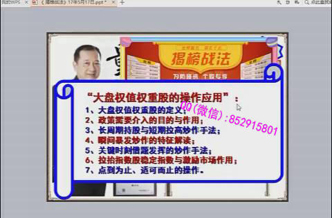 作者本名陈少川,笔名麦克,匿名笑笑人生,祖籍广东省潮安县,1960年生于马来西亚,80年赴台求学,83年毕业,87年开始接触期货,于89年转战台湾股票市场,将证券投资行业当成终身事业,专研至今超过25年,独创《麦氏理论》,是理论创始人,每日都有文章发表在米谷网、投资快报,也是电台、媒体的常客,著有多本有关技术分析书籍。 培训视频截图: