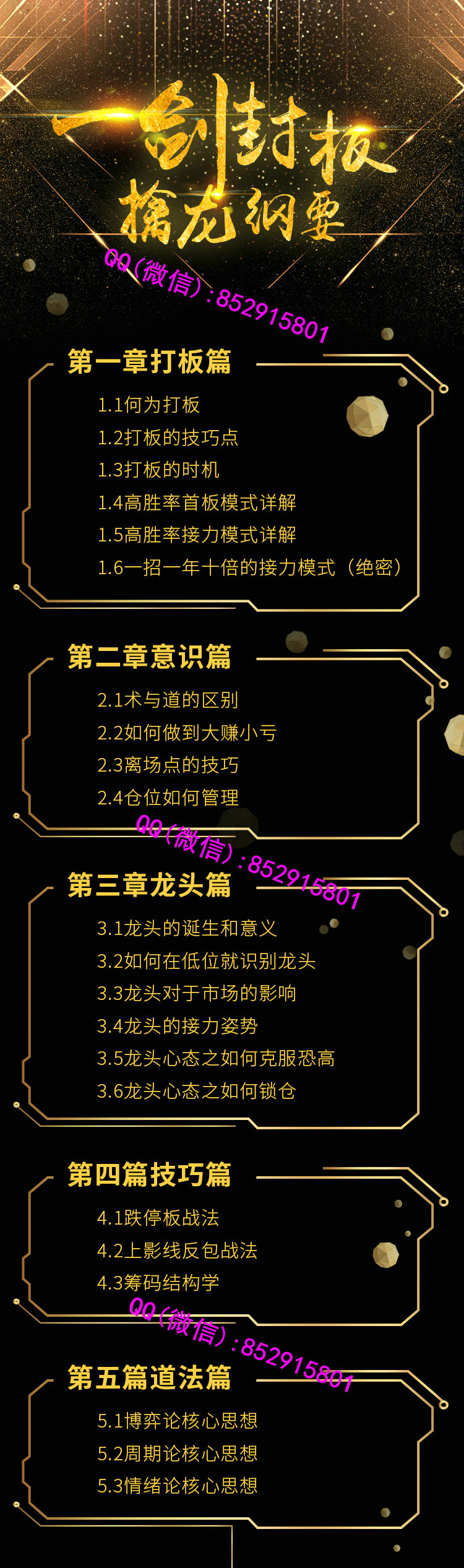 第三章龙头篇3.1龙头的诞生和意义3.2如何在低位就识别龙头3.3龙头对于市场的影响3.4龙头的接力姿势3.5龙头心态之如何克服恐高3.6龙头心态之如何锁仓第四篇技巧篇4.1跌停板战法4.2上影线反包战法4.3筹码结构学第五篇道法篇5.1博弈论核心思想5.2周期论核心思想5.3情绪论核心思想