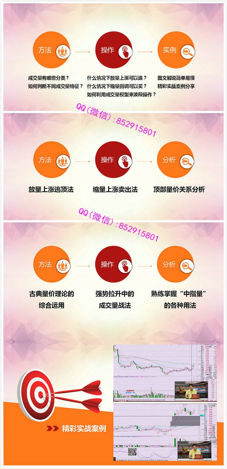 课程简介成交量是股价,上涨的原动力,本课程将教会大家如何利用天量、地量和窒息量进行波段操作,识别股价涨跌的密码,掌握交易时机。另外将仔细讲解上升趋势、下降趋势、横盘趋势中的经典量价理论,帮助大家更好地进行波段操作。课程大纲:成交量有哪些分类?什么情况下放量上涨可以追?如何判断不同成交量特征?什么情况下编量回调可以买?如何利用成交星模型来波段操作?图文解说简单易懂精彩实战泰例分享放量上涨逃顶法缩量上涨卖出法顶部量价关系分析古典量价理论的综合运用强势拉升中的成交量战法熟练掌握“中指量”的各种用法培训视频截图: