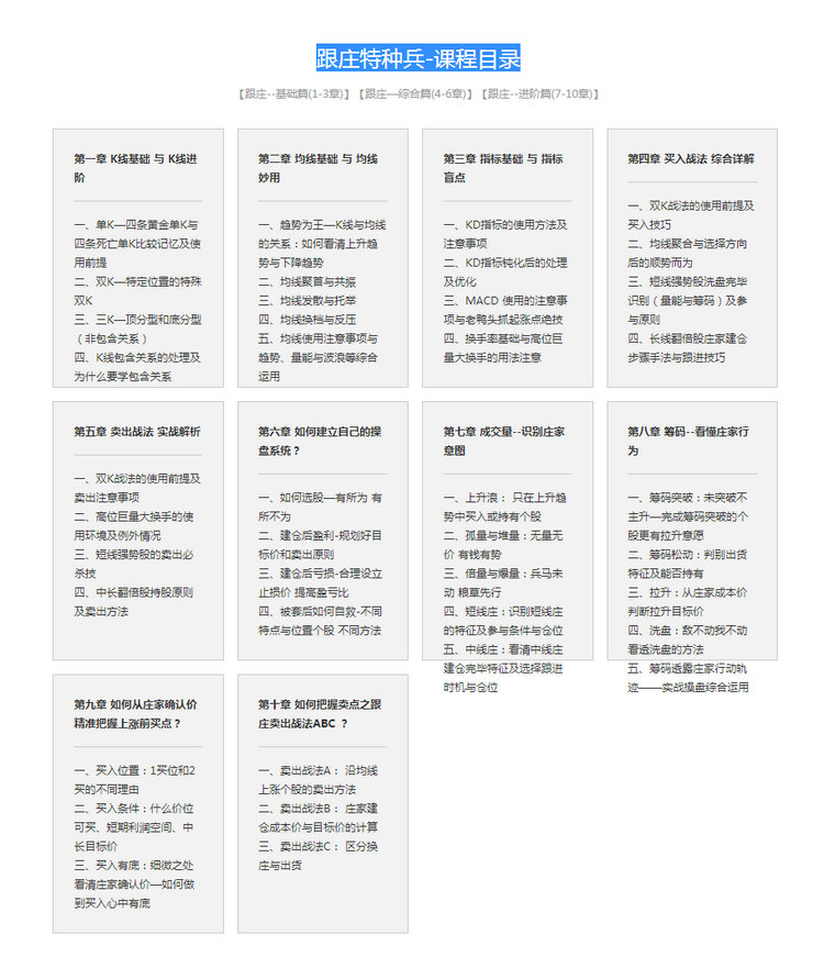 跟庄特种兵课程目录:[跟庄-基础篇(1-3章)] [跟庄- 综合篇(4-6章)] [跟庄- 进阶篇(7-10章)]第一章K线基础与K线进阶一、单K一四条黄金单K与四条死亡单K比较记忆及使用前提二、双K一特定位置的特殊三、三K一项分型和底分型(非包含关系)四、K线包含关系的处理及为什么要学包含关系