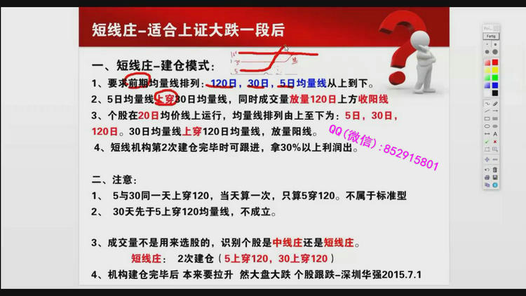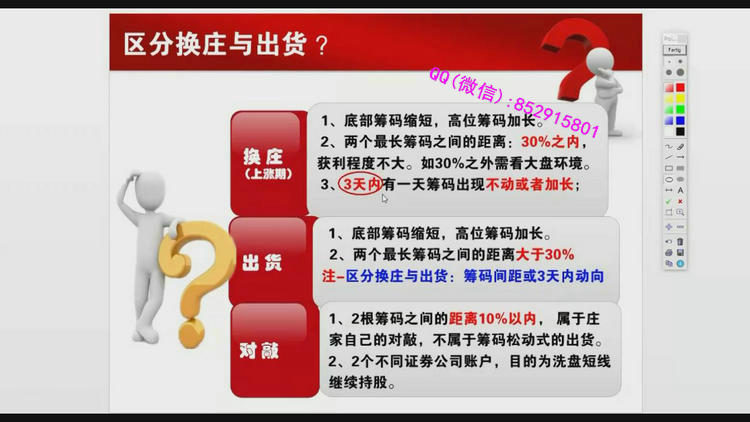 第十章如何把握卖点之跟庄卖出战法ABC ?一.卖出战法A:沿均线上涨个股的卖出方法二、卖出战法B:庄家建仓成本价与目标价的计算三、卖出战法C:区分换庄与出货视频截图: