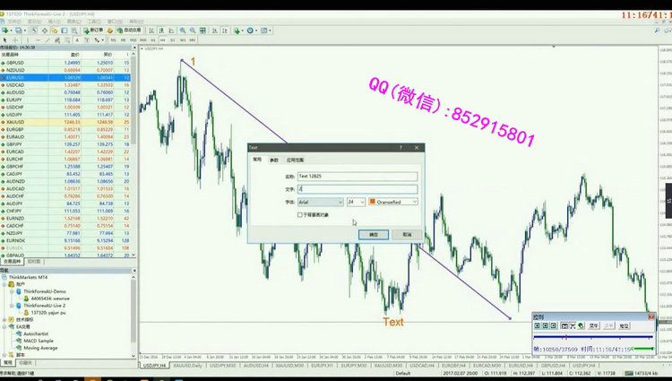 课程目录:1.MT4软件安装和账户登录2.市场报价窗口3.图标窗口4.导航窗口5.终端窗口6.交易下单 止损止盈 挂单交易7.画图 指标 EA的使用8.外汇交易的参与者9.外汇交易定义和时间10.影响和外汇的主要因素11.外汇主要交易方式12.外汇的相关词语介绍13.基本面分析14.K线15.趋势 趋势线16.均线与均线运用交易17.反转双底顶和中继矩形18.支撑阻力以及止损设置19.资金管理和心态20.蜡烛图详解—中继形态21.蜡烛图详解—反转形态22.头肩底顶图形详解23.趋势线 水平线用于交易24.通道线 X线 用于交易25.斐波那契回调线26.计划交易 交易统计27.交易系统简介28.几套交易系统解析29.汇世趋势波段交易系统解析30.交易系统复盘解析31.分仓交易法32.480倍账户交易记录结合行情回顾33.交易记录及纪律严明的展示34.交易记录分享235.趋势波段EA展示视频截图: