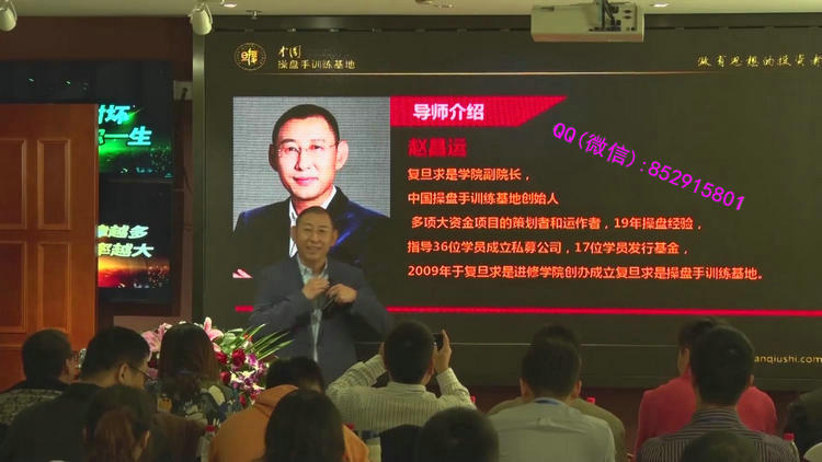 赵昌运,复旦求是学院副院长,复旦金融研究所所长。多项大资金项目的策划者和运作者,19年操盘经验,指导36位学员成立私募公司,17位学员发行基金,2009年受聘于复旦求是进修学院并创办成立复旦求是操盘手训练基地。他坚守“交易之道乃自然之道”理念,深谙交易人性与市场关系,业内戏称“游走于市场中的狩猎者”。 视频截图: