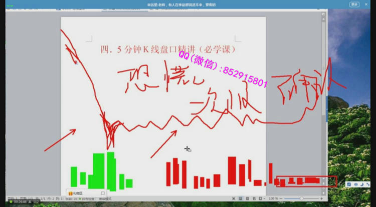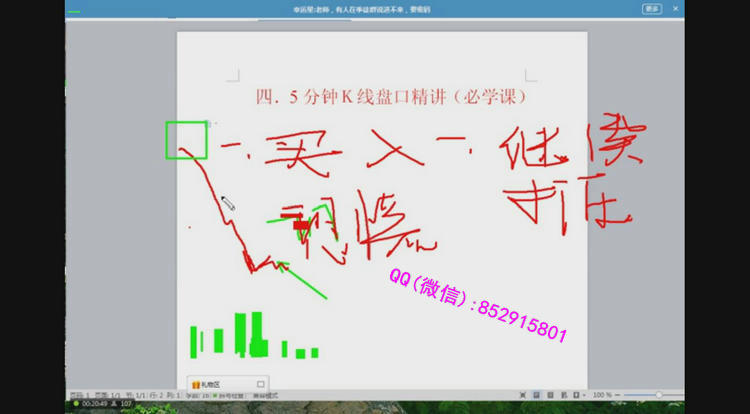 课程目录: 第一集:K线 第二集:股价结构 第三集:如何区别反弹和反转 第四集:5分钟K线盘口 第五集:量价分析 第六集:短线买入手法 第七集:短线卖点 第八集:日分时图分析 第九集:强势股的底部特征分析 第十集:股票调整周期判断与分析 第十一集:从筹码转移角度分析股票调整的空间和周期 第十二集:如何判断介入资金性质,短期还是长期 第十三集:主升浪高发区域精讲 第十四集:股票中级顶部识别 培训视频截图: