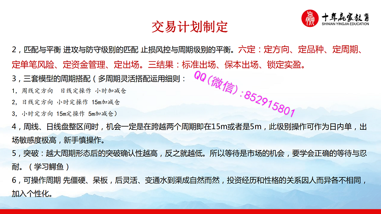 3. 趋势运用周期:月线,周线决定方向,日线进出场,60分钟线加减仓。