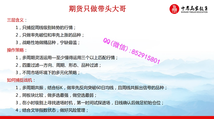 可操作的品种,只有龙头。考虑:方向,周期运用,考虑放在哪个级别里面赢亏比最大风险最小。以此设定交易策略及交易计划,没有计划就没有执行。