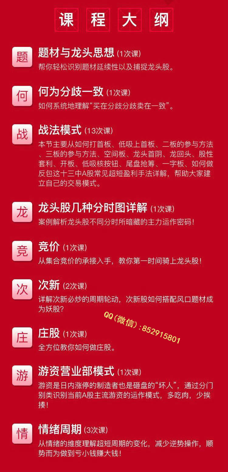 从总纲到细节名师手把手教学全面掌握打板的战略和战术(3个月时间,24次课)